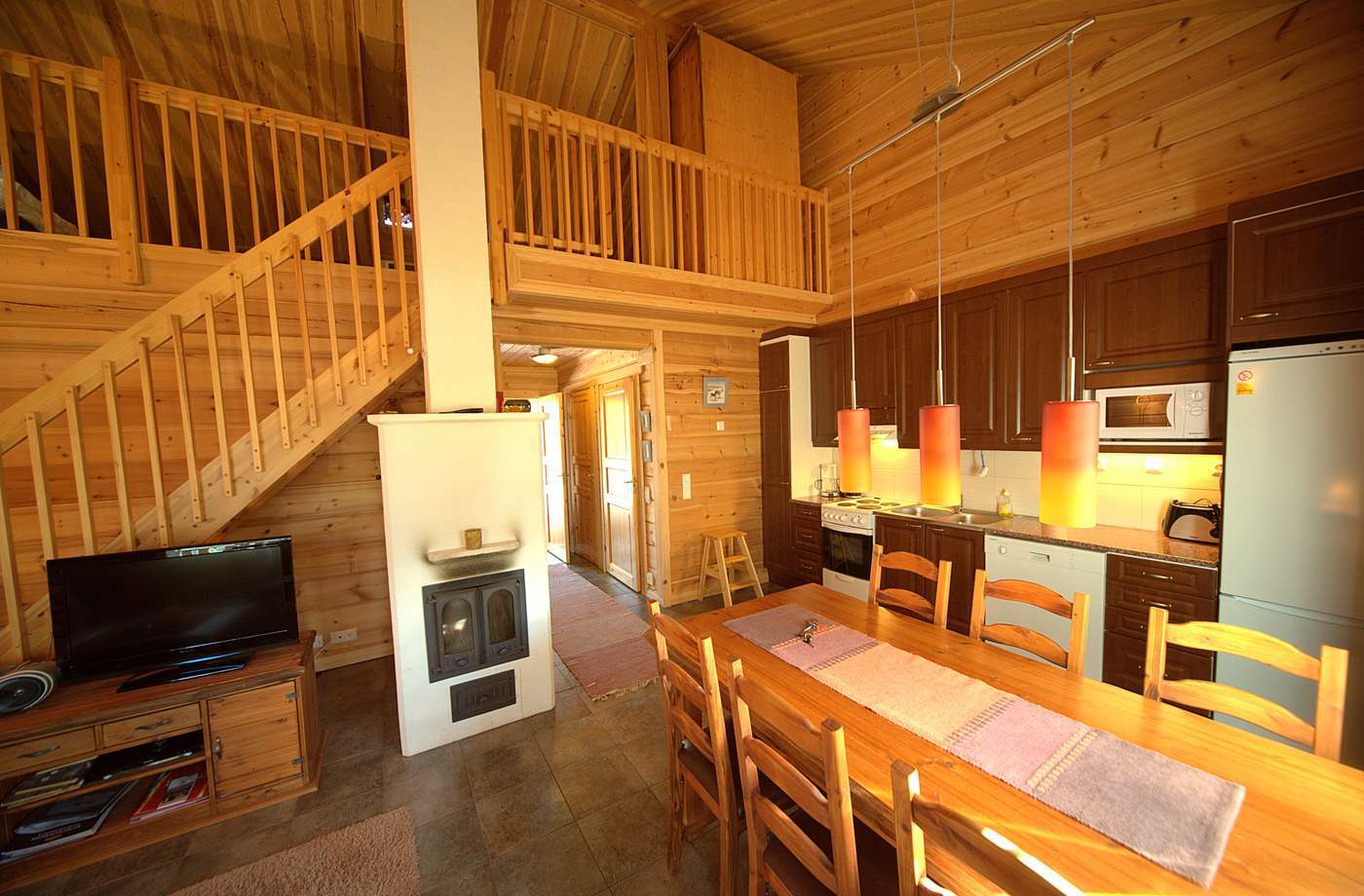 Küche, Dusche, WC, elektrische Sauna, Cheminée, Waschmaschine, TV, Radio, CD/DVD-Player.