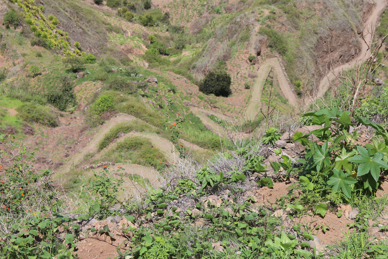 Transfer von der Unterkunft zum Flughafen. Inselflug von Fogo nach Santiago. Fahrt in den Südwesten der Insel nach Cidade Velha. Transfer und Wanderung durch das grüne Ribeira Grande Tal zum historischen Ort Cidade Velha. 1585 überfiel der Pirat Sir Francis Drake zum ersten Mal die Stadt. Sklaven wurden hier verkauft und der Pelourinho (Pranger) erinnert noch heute an die Geschichte des Sklavenhandels. Der Kern wurde 2009 zum UNESCO-Weltkulturerbe erklärt.
