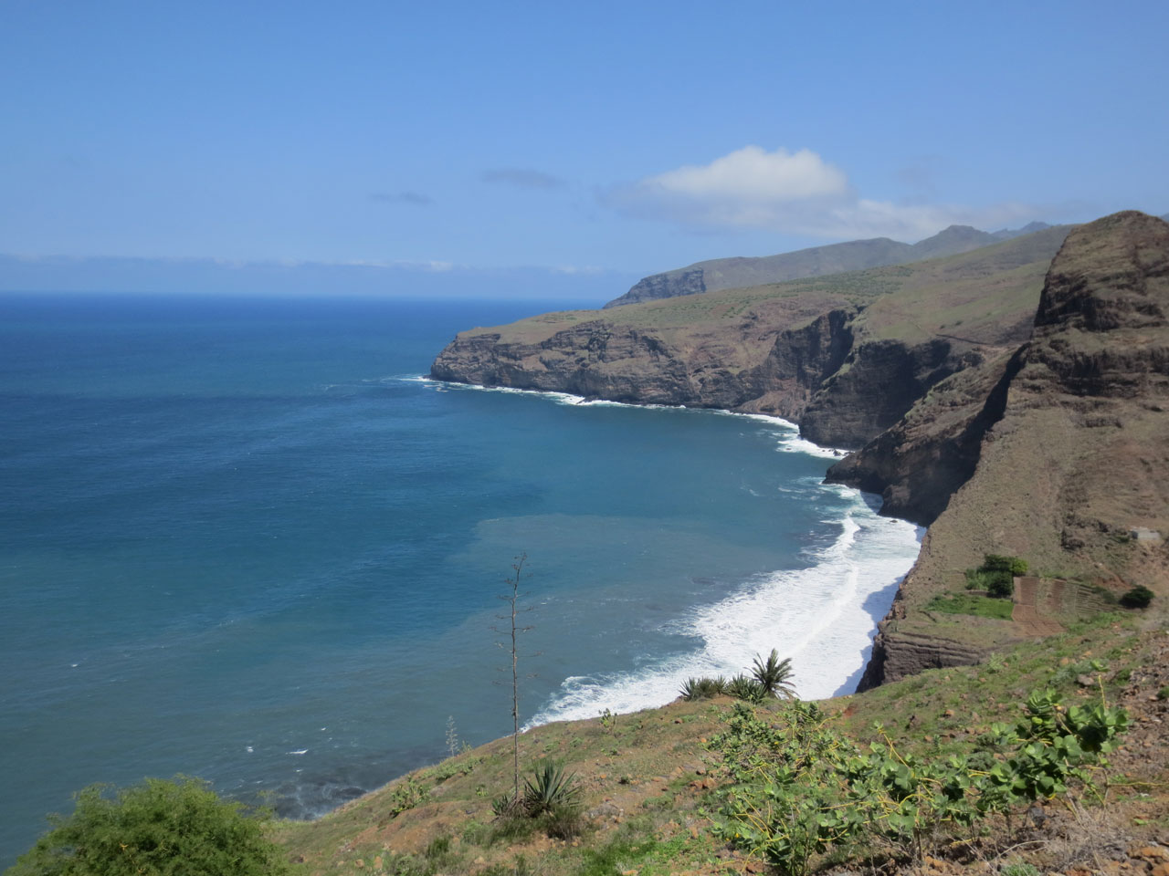 Beginn Ihres Trekkings von Haus zu Haus. Auf alten Eselswegen, die sich durch Steilküste winden, wandern Sie heute am Meer entlang. Unterwegs passieren Sie das Dorf Fontainhas, das wie ein Adlerhorst auf einem Felsvorsprung liegt. Vom Fischerort Cruzinha geht es am Ende zum malerischen Ort Chã de Igreja. Übernachtung in der Casa Mité e Banana Pension.