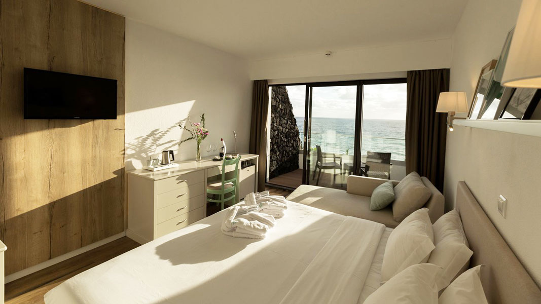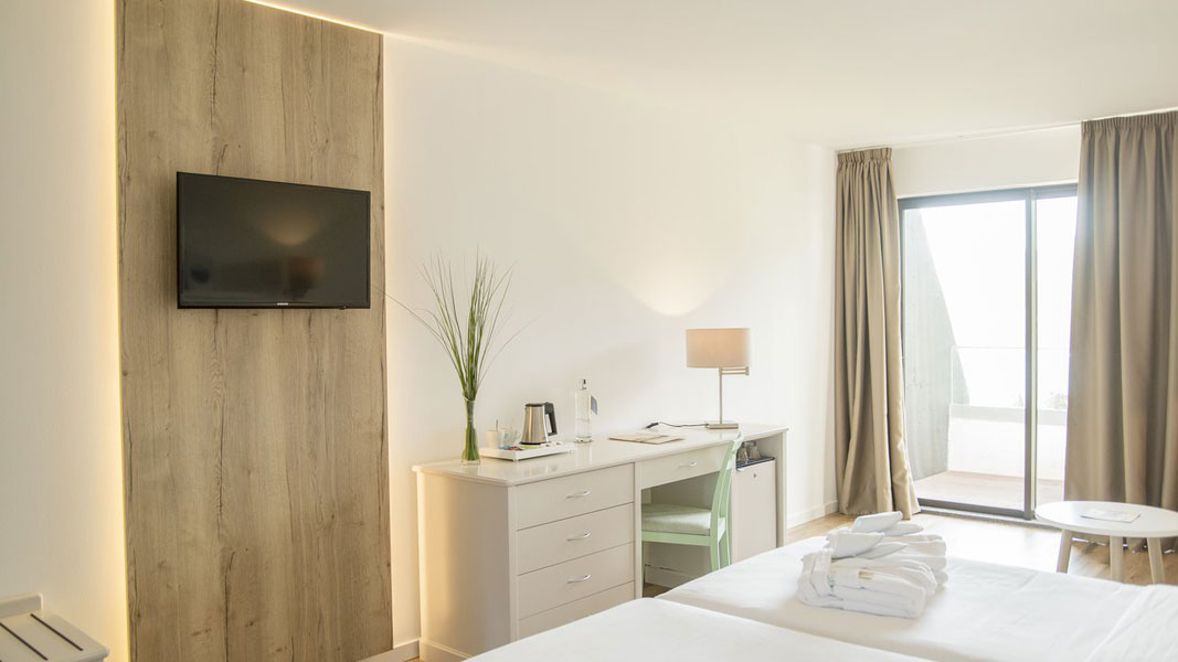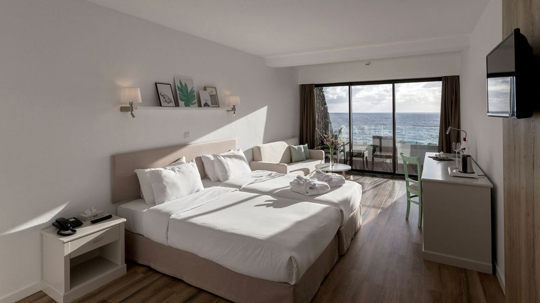Zimmer: Alle 80 Zimmer sind mit Bad/Dusche, WC, Föhn, Telefon, Kabel-TV, Safe, Kühlschrank, Klimaanlage und gratis WIFI ausgestattet. Jedes verfügt über einen Balkon mit herrlicher Sicht auf den Atlantik.
