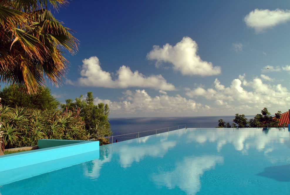 Lage: Die Einheimischen behaupten, hier erlebe man den schönsten Sonnenuntergang und haben damit wohl Recht! An der Südküste Madeiras, beeindruckend auf einem Felsen, befindet sich die ehemalige Quinta, heute das moderne Design-Hotel Estalagem Ponta do Sol. Einmal täglich kostenloser Shuttle-Bus ins 25 km entfernte Funchal und zurück. Der Strand (grober Kies) befindet sich gleich unterhalb vom Hotel.