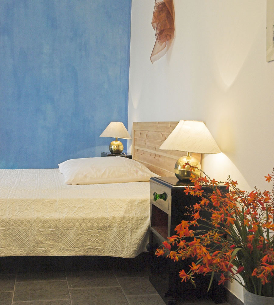 Zimmer: Jedes der 3 geräumigen Zimmer ist individuell eingerichtet und verfügt über Bad/Dusche, WC, Internet-Kabel-Anschluss (gratis) und Fussbodenheizung. Die beiden Suiten bieten zusätzlich eine Kitchenette sowie ein Wohnzimmer. Alle Unterkunftsarten haben einen Balkon oder eine Terrasse mit Ausblick auf den Berg Pico, die Altstadt von Horta oder auf den Hügel Espalamaca.