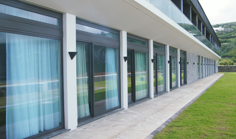 Lage: Das 2009 eröffnete Hotel das Flores liegt etwas ausserhalb von Santa Cruz das Flores bei der ehemaligen Walfabrik, die heute ein sehenswertes Museum beherbergt. Ins Zentrum der Inselhauptstadt mit Restaurants, Bars und Einkaufsmöglichkeiten ist es ein 15-minütiger Spaziergang. Nach Fajã Grande im Westen der Insel sind es 30 Fahrminuten. Der Flughafen ist 500 Meter entfernt.