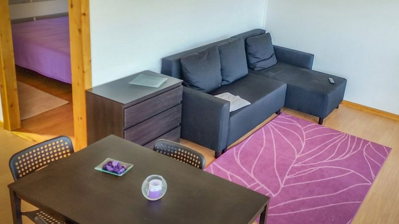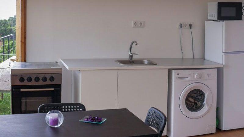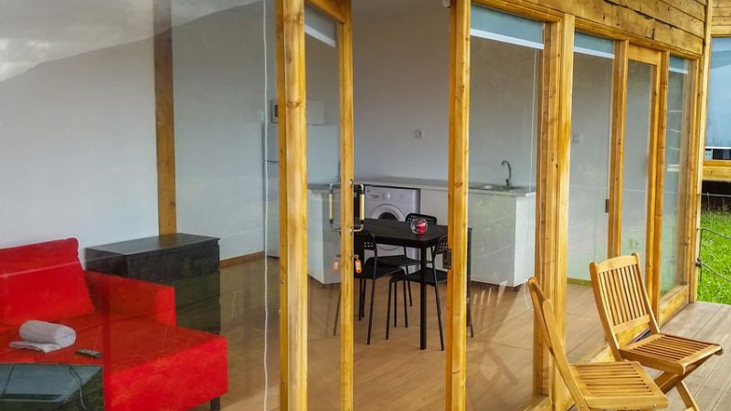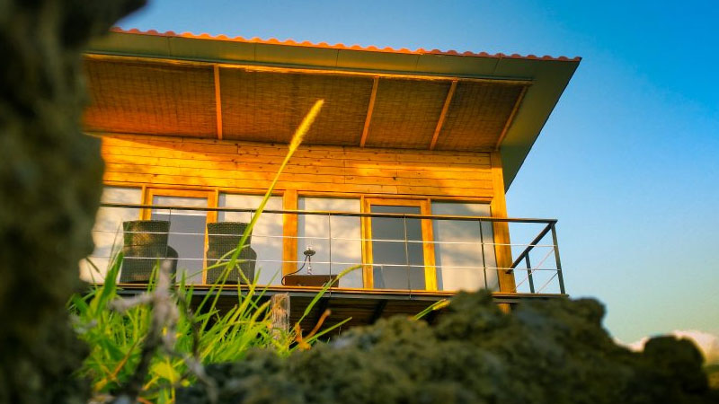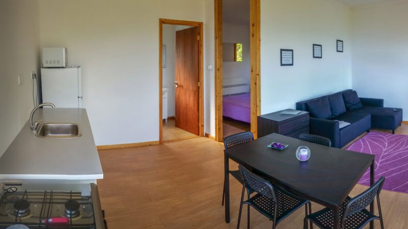 Zimmer: Die 10 hölzernen Bungalows auf Pfählen erinnern ein wenig an Baumhäuser, nur dass die Einrichtung moderner ist. Jeder Bungalow bietet ein separates Schlafzimmer, eine grosse Wohnküche (voll ausgestattet inkl. Waschmaschine), Bad/Dusche, WC, Klimaanlage, SAT-TV, gratis WIFI und eine grosse Terrasse mit Blick über den Kanal bis zur Insel Pico.