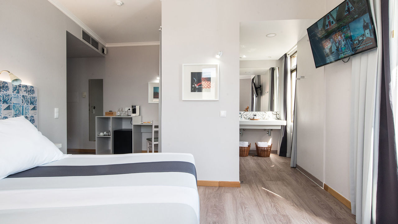 Zimmer: Mit seinen nur 54 Zimmern ist eine familiäre Atmosphäre garantiert. Alle Zimmer sind mit Bad/Dusche, WC, Föhn, Klimaanlage, Safe, Minibar, Kaffee/Tee-Kocher, SAT-TV und gratis WIFI ausgestattet. Die Dekoration der Zimmer wurde von den landestypischen Azuleijos (Kacheln) inspiriert.